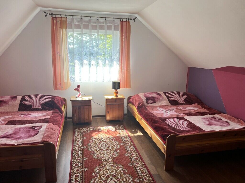 Na poziomie poddasza: korytarz, dwie sypialnie, WC i garderoba.